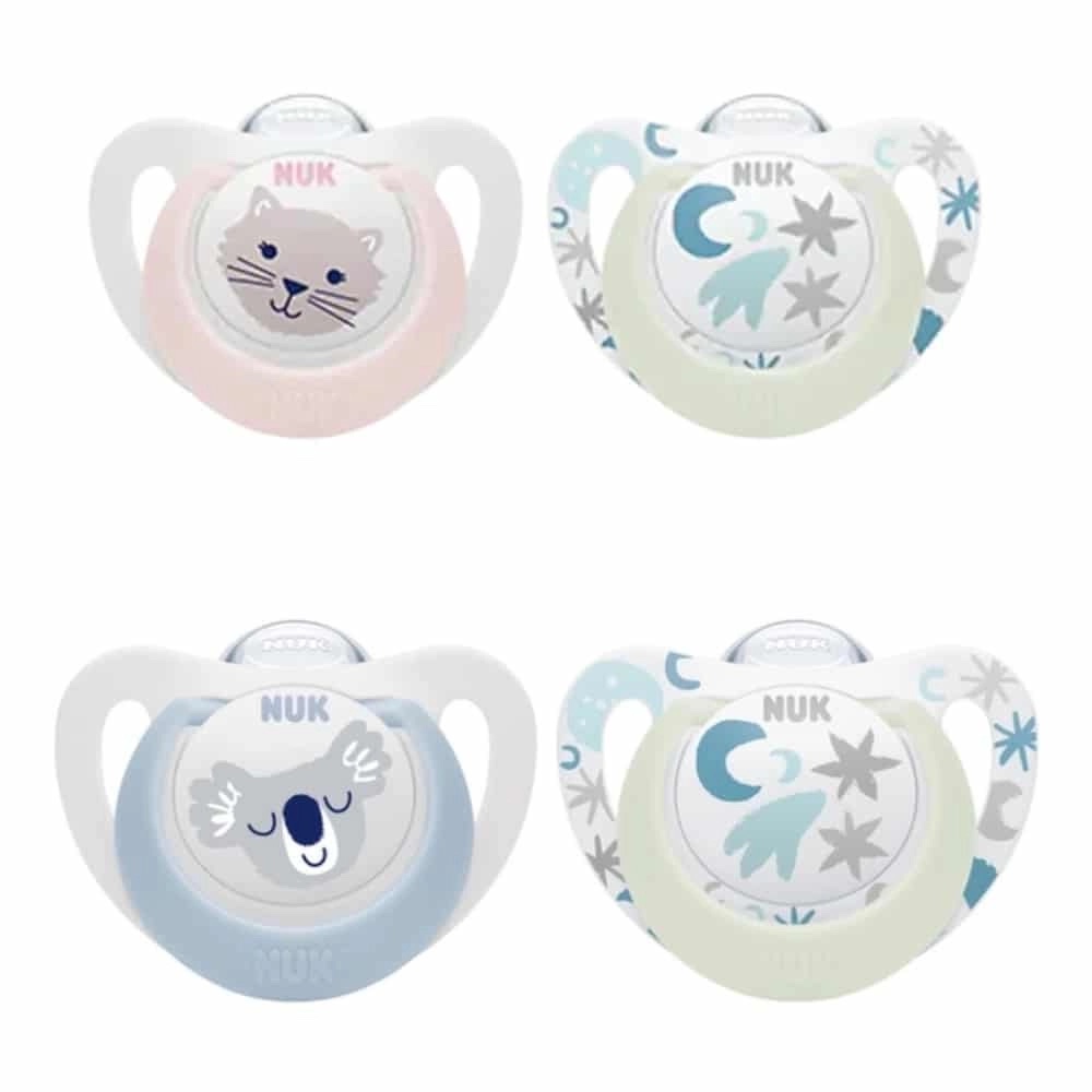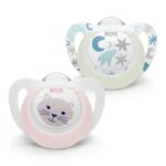 Nuk 2 Sucette Silicone Star Day & Night 0-6 mois Chat/Etoiles