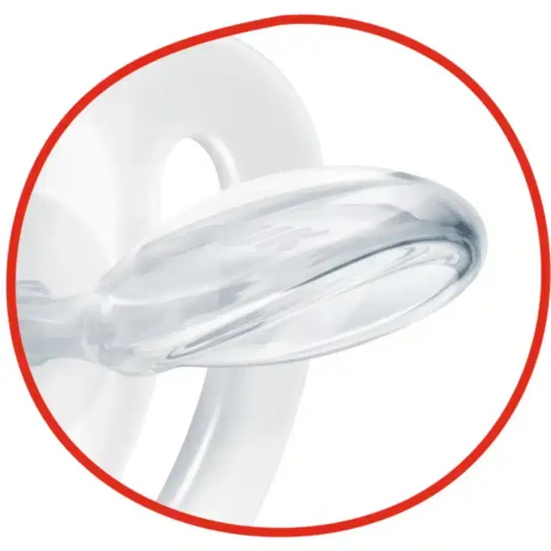Les bébés ne peuvent malheureusement pas expliquer pourquoi ils aiment tant leur NUK Starlight. Mais nous supposons que c’est grâce à sa sensation agréable dans la bouche. Au niveau de la partie supérieure, elle s’adapte très délicatement au palais. Sur cette soft zone, le matériau de la sucette est très fin et donc particulièrement doux. En même temps, NUK Starlight laisse de la place à la langue au niveau de la partie inférieure pour les mouvements naturels de succion. De plus, comme elle est très étroite et plate, elle n’exerce pratiquement aucune pression sur les dents et la mâchoire. Le développement de la mâchoire et des dents n’est donc guère affecté. Un fait confirmé par les orthodontistes*.