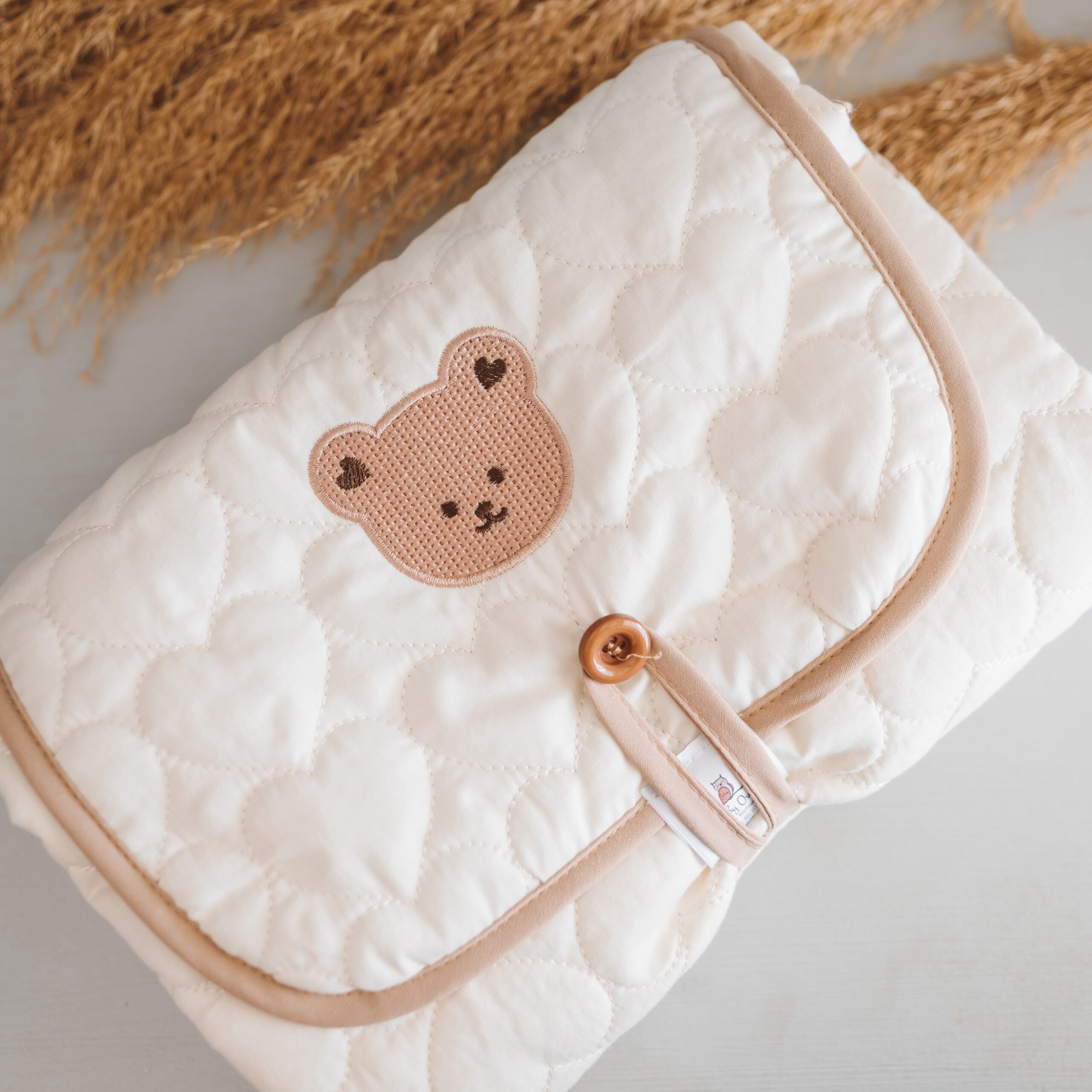 Indispensable pour toutes les mamans, ce matelas à langer imperméable, pratique et portable, devrait être dans le sac de bébé de chaque maman. Il se plie et peut être transporté dans un sac à main ou un sac pour bébé et il possède même une poignée pour le porter au poignet. Facile à utiliser et vous permet de changer votre tout-petit en toute sécurité et en bonne santé, où que vous soyez. Le matelas à langer pliable en coton doublé présente un détail en peluche brodé.
