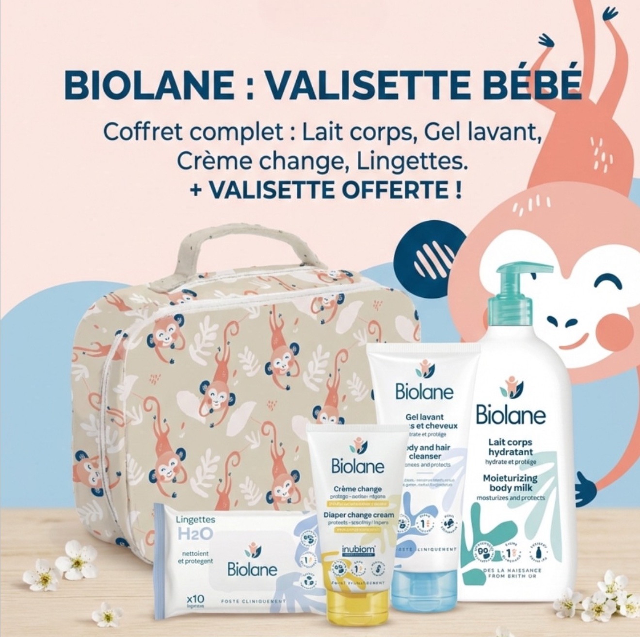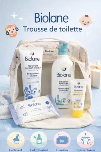 La Biolane Trousse de toilette contient les produits visibles sur l’image :