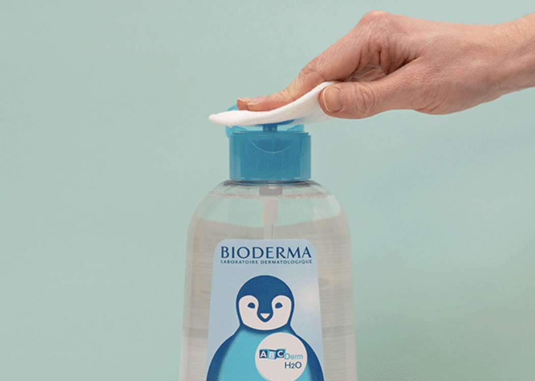 - Nettoyez délicatement la peau de votre enfant à l’aide d’un coton imbibé d’ABCDerm H20.