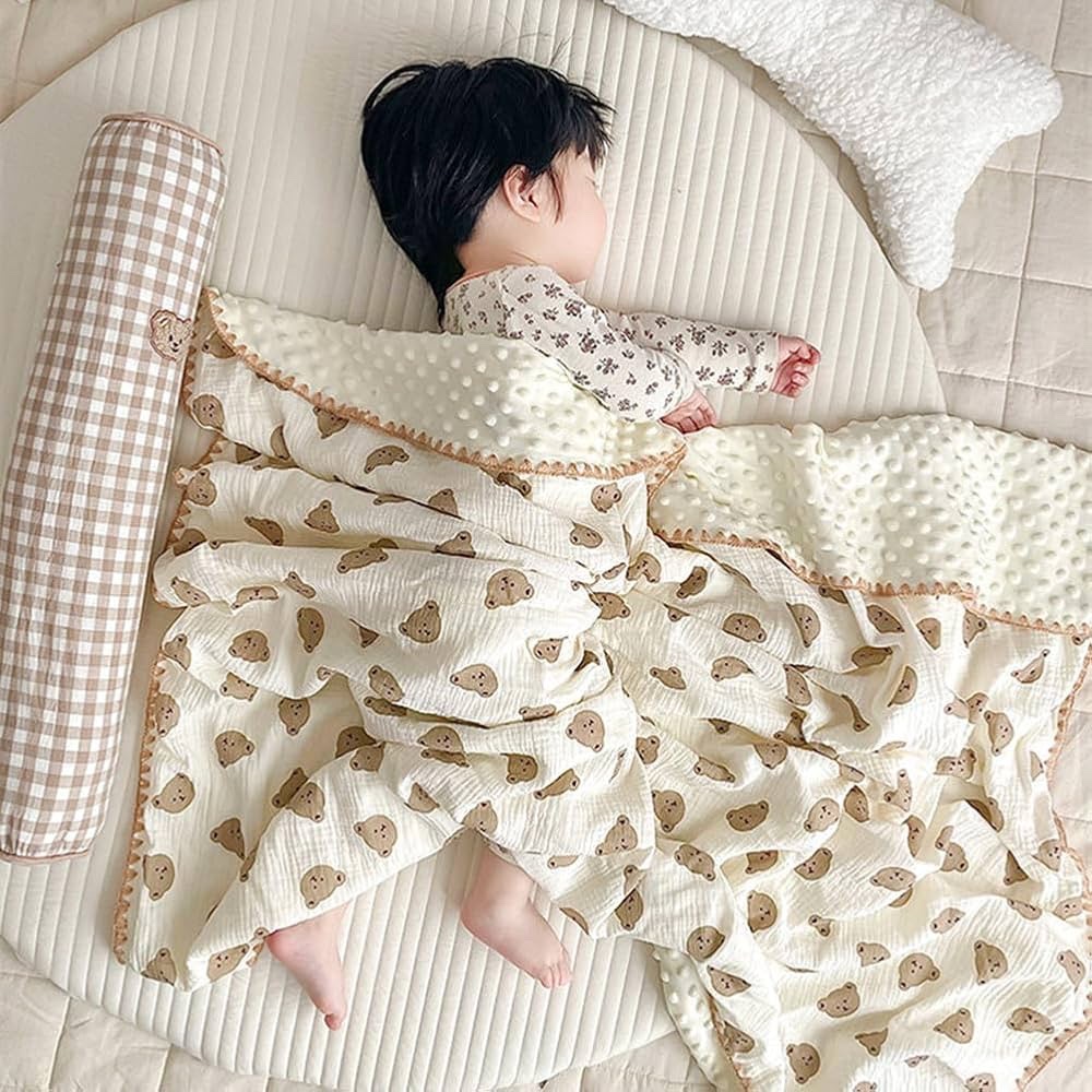 la jolie couverture pour bébé est fabriquée en fil de coton crêpe et en peluche à pois, garantissant que votre bébé reste frais et confortable même pendant les chaudes nuits d’été.couverture.Couverture pour bébé