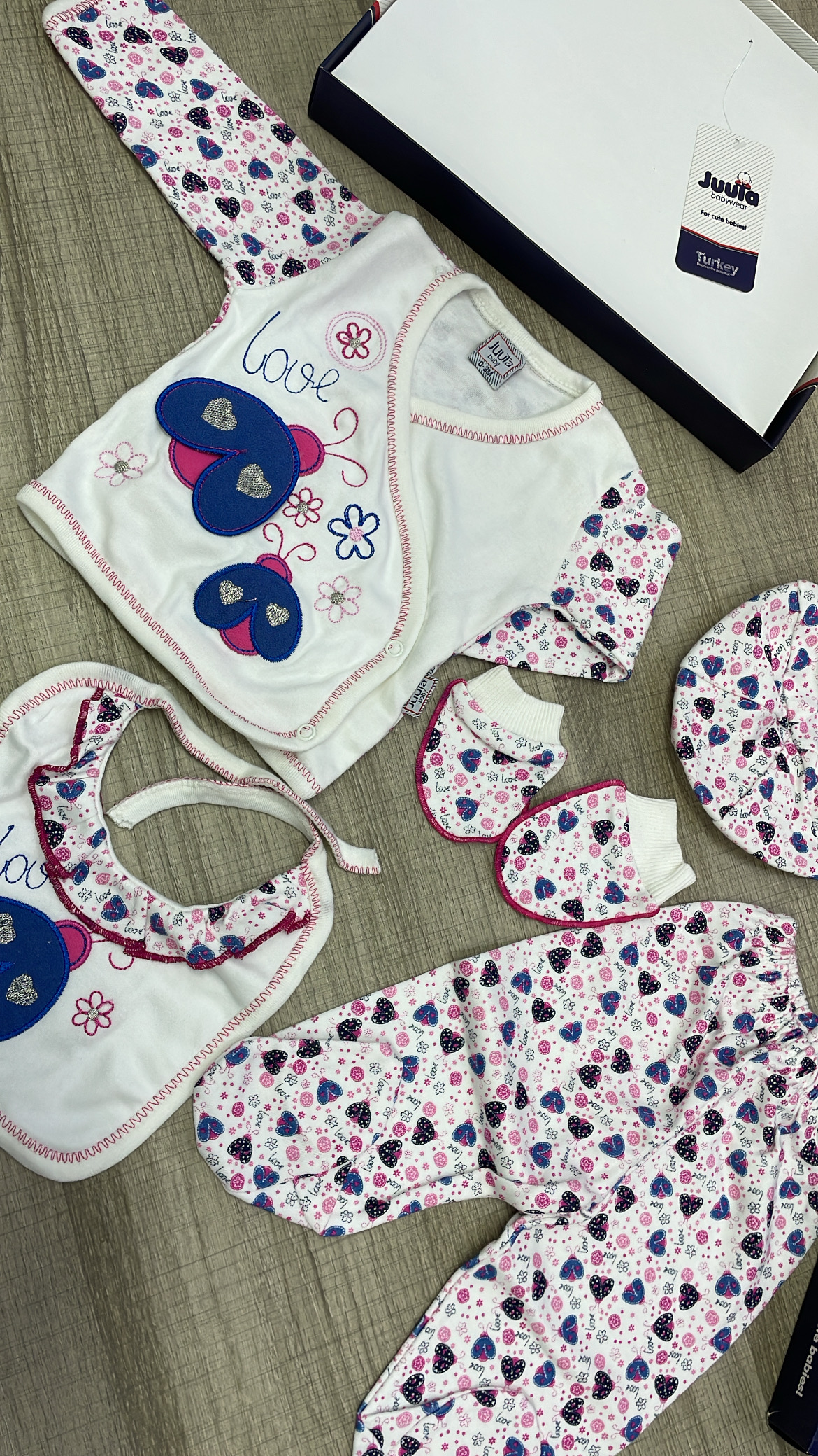 Ensembles pour la naissance 0-3 il contient 5 pièces essentielles pour un nouveau né ( le haut 👚 + le pantalon + bonnet + les moufles + bavoir)